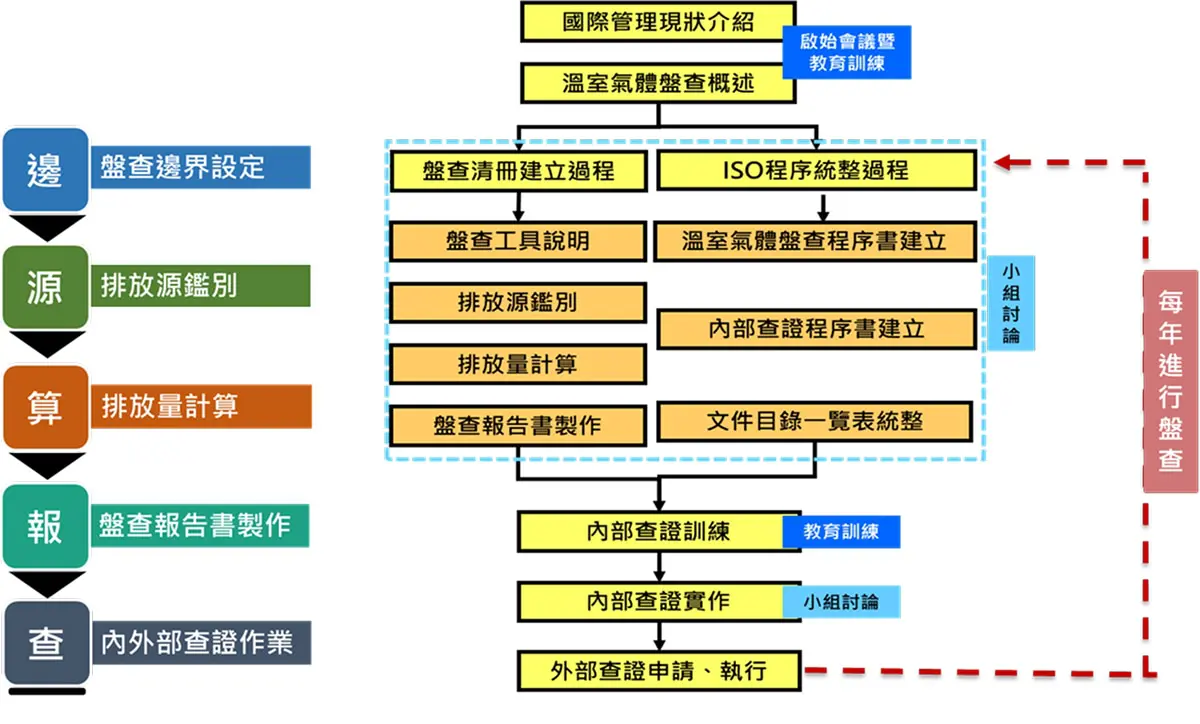 本公司具備專業顧問團隊,熟悉 ISO 14067、PAS 2050 與 LCA 方法論,能協助企業依據國際標準完成碳足跡盤查,從規劃、數據蒐集到報告揭露,提供一站式輔導服務。我們不僅協助企業建立符合第三方查證的報告,更能釐清碳管理上的風險與機會,協助企業展現永續承諾,提升品牌形象與國際競爭力。盤查流程通常包含五大步驟:製作製程圖、檢查邊界與優先順序化、收集數據、計算碳足跡及撰寫盤查報告。透過這套方法,企業能全面掌握碳排熱點,符合國際供應鏈與品牌商的要求,並進一步推動具體減碳策略,強化永續競爭優勢。